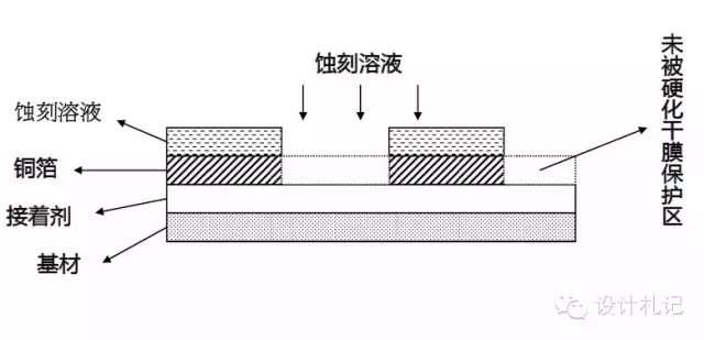 作业目的:利用药液将显影后露出的铜蚀刻掉,形成图形转移。