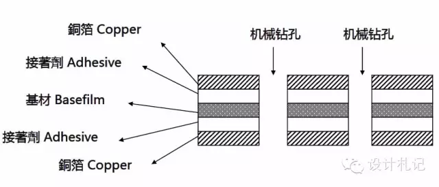 ﹣双面覆铜板:3LCCL(有胶)、2LCCL(无胶),以下为图解。
