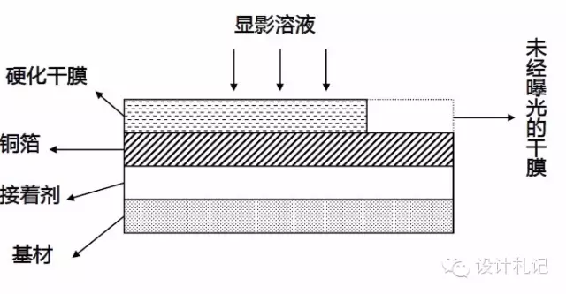 反应,菲林是棕色的地方,UV光无法穿透,菲林不能和其对