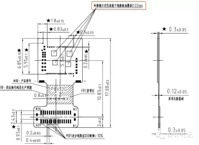 线路板设计厚度0.3mm,钢片凸台高度0.02mm。