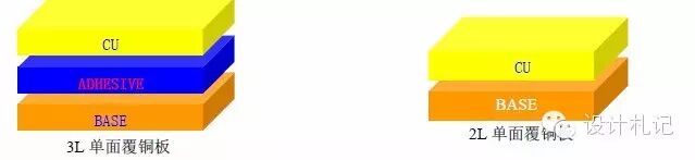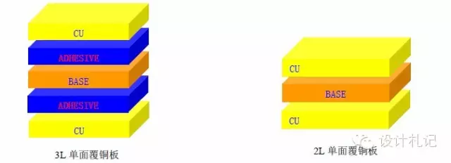﹣单面覆铜板:3LCCL(有胶)、2LCCL(无胶),以下为图解。