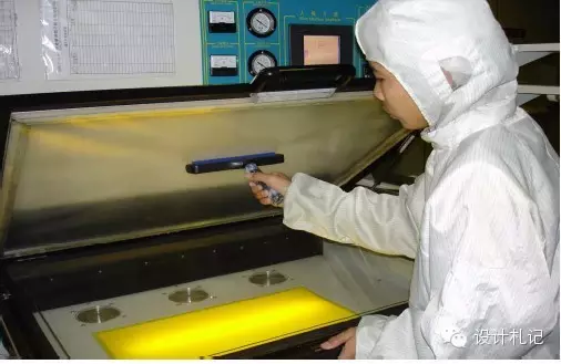 作业目的:通过UV光照射和菲挡,菲林透明的地方和干膜发生光学聚合